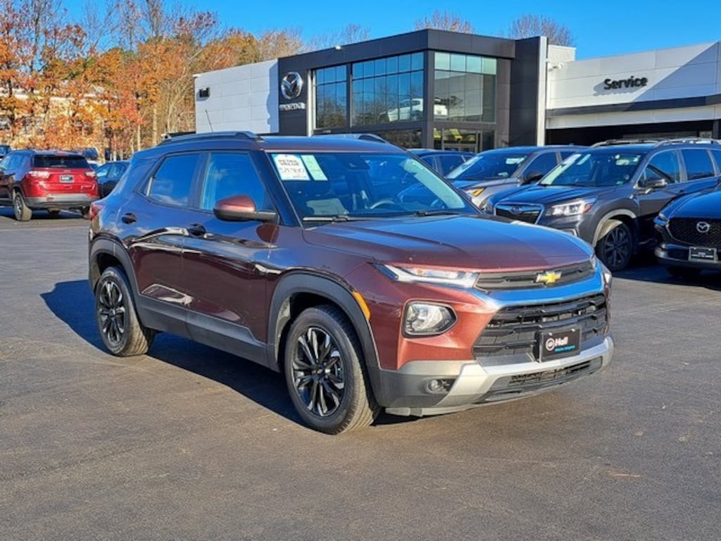 CARFAX One-Owner. Clean CARFAX. Mahogany Red Metallic 2023 Chevrolet TrailBlazer LT FWD CVT 1.2L Ecotec Turbo DOHC DI w/VVT We are currently offering Vehicle Purchase Home Delivery by appointment. Please contact for details., 2-Way Adjustable Front Head Restraints, 2-Way Power Driver Lumbar Seat Adjuster, 4-Way Manual Front Passenger Seat Adjuster, 6-Speaker Audio System Feature, 7" Diagonal Color Touchscreen, 8-Way Power Driver Seat Adjuster, Brake assist, Bumpers: body-color, Cloth Seat Trim, Delay-off headlights, Driver door bin, Dual front side impact airbags, Electronic Stability Control, Emergency communication system: OnStar and Chevrolet connected services capable, Front Center Armrest, Front fog lights, Front wheel independent suspension, Fully automatic headlights, Heated door mirrors, Illuminated entry, Knee airbag, Low tire pressure warning, Occupant sensing airbag, Power steering, Power windows, Preferred Equipment Group 1LT, Radio data system, Radio: Chevrolet Infotainment 3 System, Rear window defroster, Remote keyless entry, Ride & Handling Suspension, Security system, SiriusXM Radio, Speed control, Split folding rear seat, Spoiler, Tachometer, Telescoping steering wheel, Tilt steering wheel, Traction control, Wheels: 17" High Gloss Black Machined Aluminum, Wireless Apple CarPlay/Android Auto.