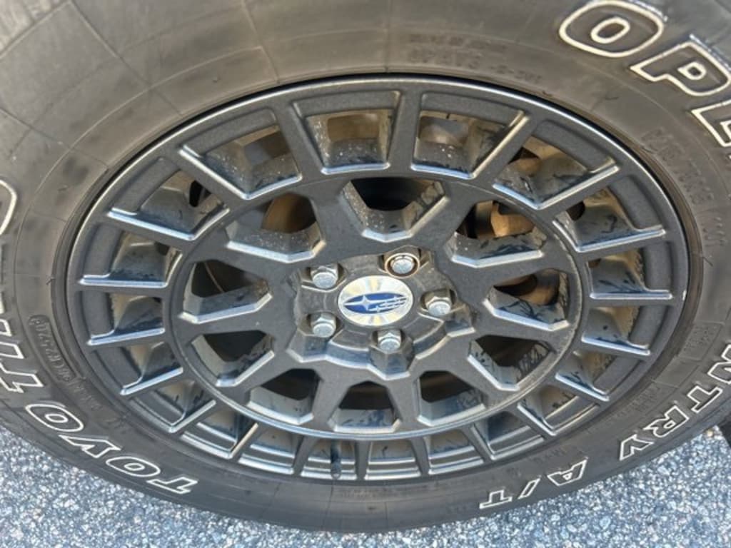 Popular Package #2 (All-Weather Floor Liners, Auto-Dimming Mirror w/Compass & HomeLink, Rear Bumper Cover, Rear Seatback Protector, and Splash Guards), Standard Model, 17" x 7.0J Aluminum Alloy Wheels, 3.90 Axle Ratio, 4-Wheel Disc Brakes, 6 Speakers, ABS brakes, Aero Cross Bar Set, Air Conditioning, Alloy wheels, AM/FM radio, Apple CarPlay/Android Auto, Brake assist, Bumpers: body-color, Cloth Upholstery, Driver door bin, Driver vanity mirror, Dual front impact airbags, Dual front side impact airbags, Electronic Stability Control, Emergency communication system: STARLINK, Exterior Parking Camera Rear, Four wheel independent suspension, Front anti-roll bar, Front Bucket Seats, Front Center Armrest, Front fog lights, Front reading lights, Fully automatic headlights, Heated door mirrors, Heated Front Bucket Seats, Heated front seats, Illuminated entry, Knee airbag, Leather Shift Knob, Low tire pressure warning, Occupant sensing airbag, Outside temperature display, Overhead airbag, Overhead console, Panic alarm, Passenger door bin, Passenger vanity mirror, Power door mirrors, Power steering, Power windows, Radio data system, Radio: Subaru Starlink 6.5" Multimedia System, Rear anti-roll bar, Rear window defroster, Rear window wiper, Remote keyless entry, Roof rack: rails only, Security system, Speed control, Speed-sensing steering, Split folding rear seat, Spoiler, Steering wheel mounted audio controls, Subaru Starlink Smartphone Integration, Tachometer, Telescoping steering wheel, Tilt steering wheel, Traction control, Trip computer, and Variably intermittent wipers. Recent Arrival! Odometer is 15590 miles below market average! 27/33 City/Highway MPG