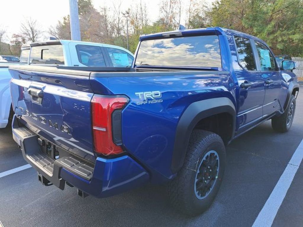JUST ARRIVED. PENDING INSPECTION. 2024 Toyota Tacoma TRD Off-Road TRD Off-Road 4WD. 2.4L 4-Cylinder 4WD 8-Speed Automatic Blue Dealer Discount of $2,698 off MSRP TRD Off Road Package, 4WD, 3.583 Axle Ratio, 4-Wheel Disc Brakes, 6 Speakers, ABS brakes, Air Conditioning, Alloy wheels, AM/FM radio: SiriusXM, Anti-whiplash front head restraints, Apple CarPlay/Android Auto, Auto High-beam Headlights, Auto-dimming Rear-View mirror, Automatic temperature control, Black Badge Overlay (TMS), Black Chrome Exhaust Tip (TMS), Black Tailgate Insert (TMS), Brake assist, Bumpers: body-color, Driver door bin, Dual front impact airbags, Dual front side impact airbags, Electronic Stability Control, Emergency communication system: Safety Connect (1-year trial), Exterior Parking Camera Rear, Fabric Seat Trim (FD), Four wheel independent suspension, Front anti-roll bar, Front Bucket Seats, Front Center Armrest, Front fog lights, Front reading lights, Fully automatic headlights, Heated door mirrors, Heated Seats, Illuminated entry, Knee airbag, Leather Shift Knob, Leather steering wheel, Low tire pressure warning, Occupant sensing airbag, Outside temperature display, Overhead airbag, Overhead console, Panic alarm, Passenger door bin, Power door mirrors, Power steering, Power windows, Radio: 14" Toyota Audio Multimedia (EE), Radio: 8" Toyota Audio Multimedia, Rear step bumper, Remote keyless entry, Security system, Speed control, Speed-sensing steering, Split folding rear seat, Spray-On Bed Liner (TMS), Steering wheel mounted audio controls, Tachometer, Telescoping steering wheel, Tilt steering wheel, Traction control, Trip computer, Turn signal indicator mirrors, and Variably intermittent wipers. *Every Internet Price includes currently applicable incentives. Some incentives may require financing through the manufacturer's finance company on approved credit. Some manufacturer incentives may not be combined with special APR. You may also qualify for additional manufacturer incentive programs (E.G., College graduate, owner loyalty, and military). See dealer for more details about these programs. Your additional costs are sales tax, tag and title fees for the state in which the vehicle will be registered, any dealer-installed options and a $995 dealer processing fee (Virginia). Prices are subject to change, and prior sales are excluded. While every reasonable effort is made to ensure the accuracy of this information, we are not responsible for any errors or omissions contained on these pages. Please verify any information in question with the dealer.